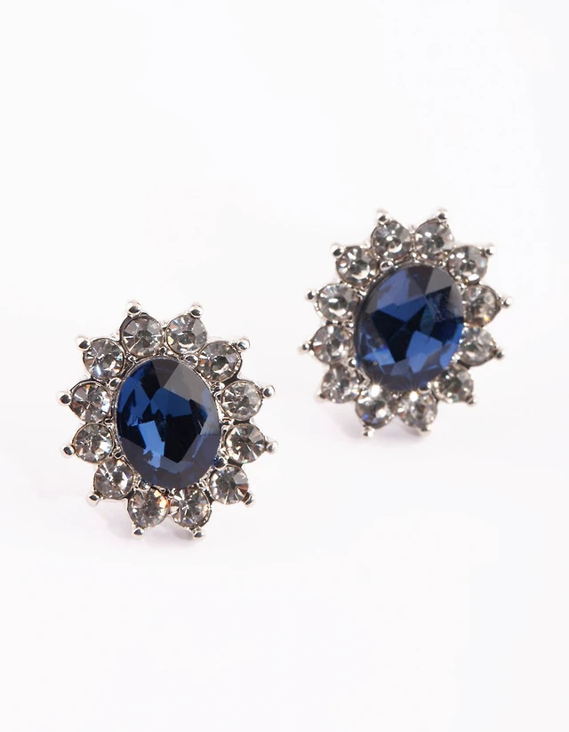Silver Diamond Simulant Blue Stud Earrings