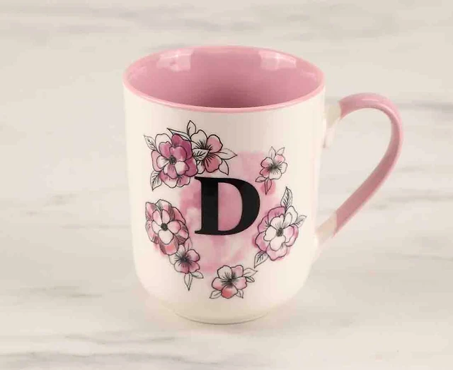 Monogram Mug Snowflake design and Letter H, Navy and White, 370ML