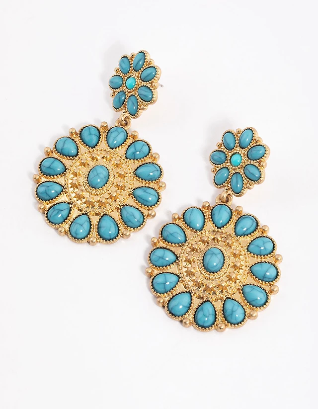 Antique Gold Turquoise Blue Bead Drop Jhumka Earrings