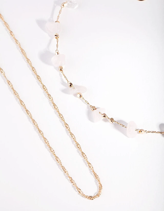 Gold Plated Fine Three Layer Bead Disc Necklace
