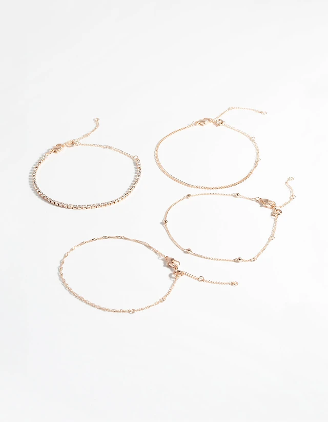 Rose Gold Diamante Twist Bracelet & Anklet 4-Pack Set