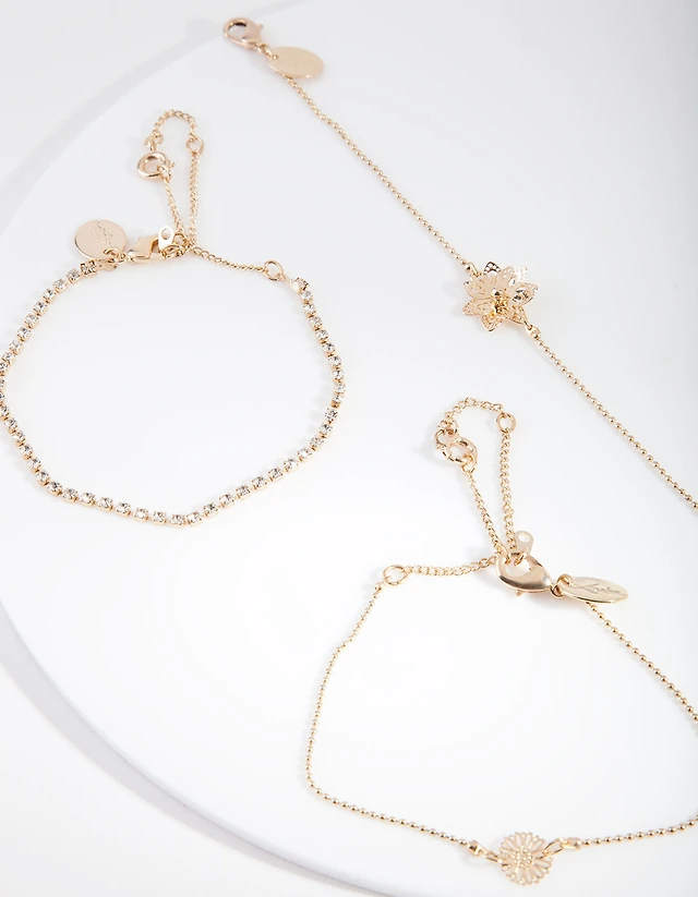 Gold Flower Friendship Anklet Bracelet 4-Pack