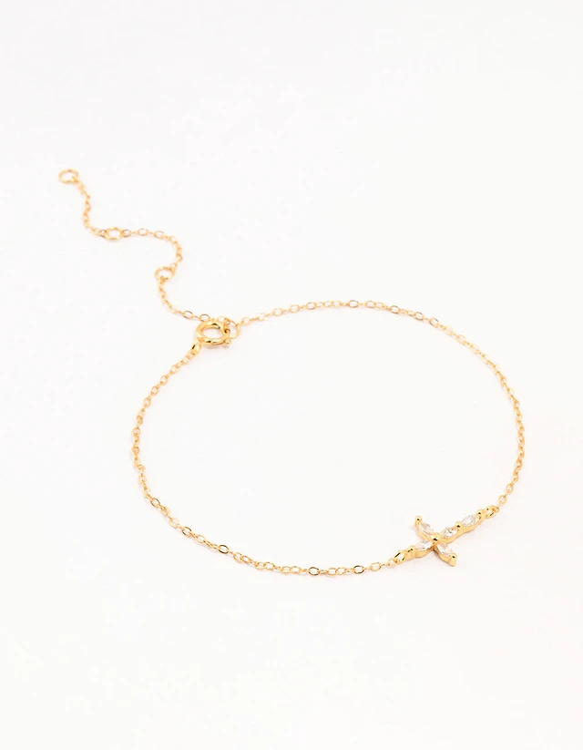 Gold Plated Sterling Silver Marquise Cross Bracelet