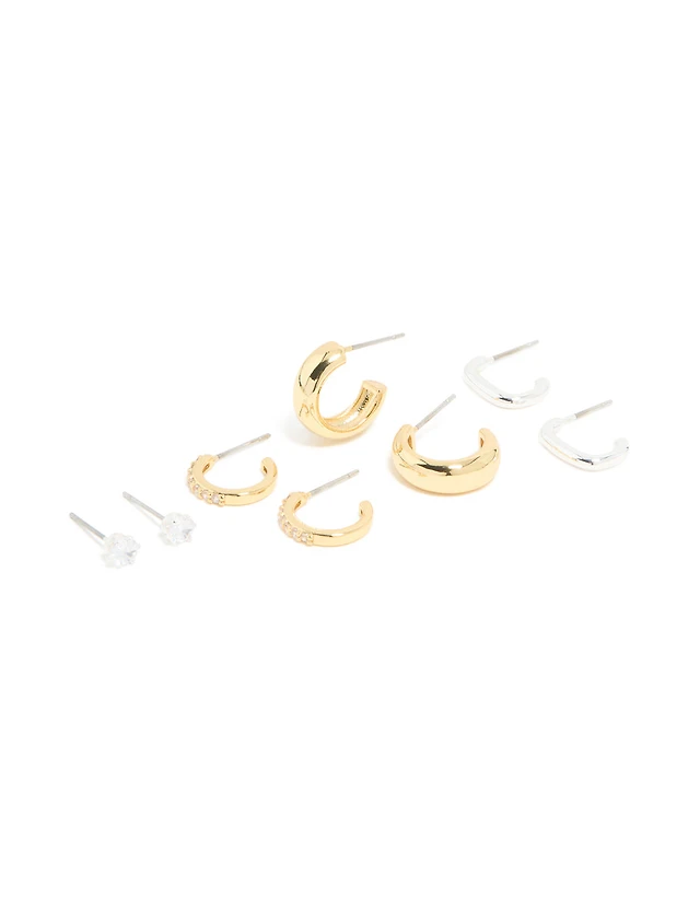Waterproof Gold Plated Stainless Steel Cubic Zirconia Chain Huggie Drop Earrings