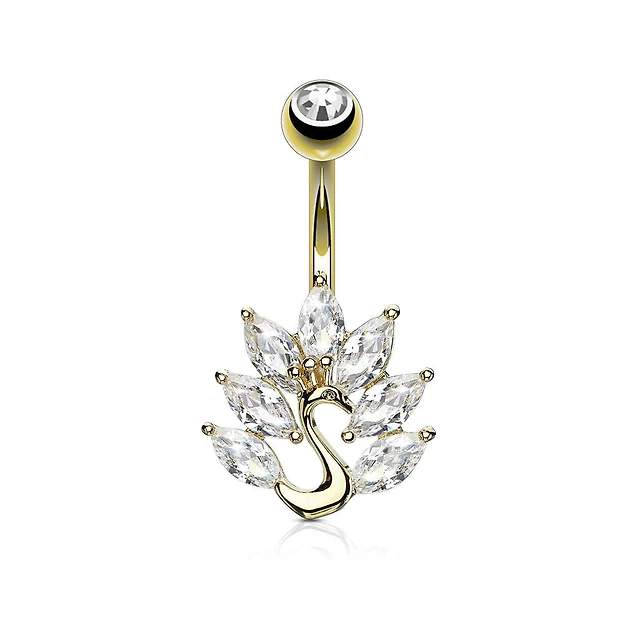 316L Surgical Steel Gold Plated White CZ Peacock Belly Ring