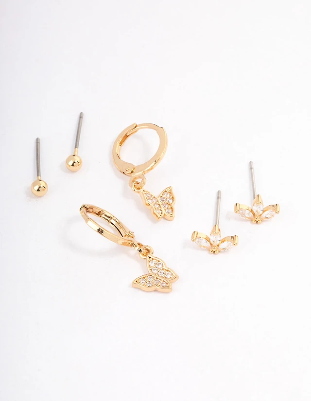Gold Plated Brass Cubic Zirconia Pavé Pebble Stud Earrings