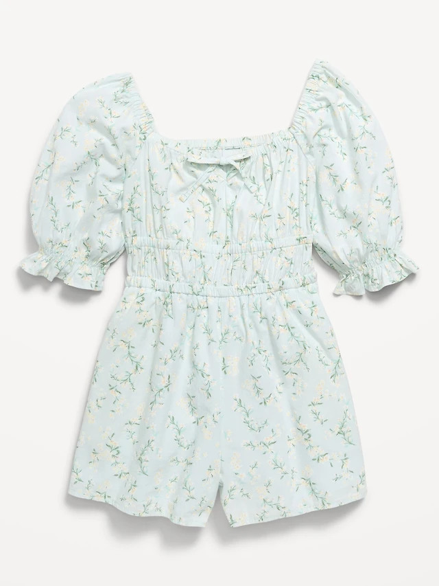 Printed Sleeveless Tie-Bow Romper for Toddler Girls