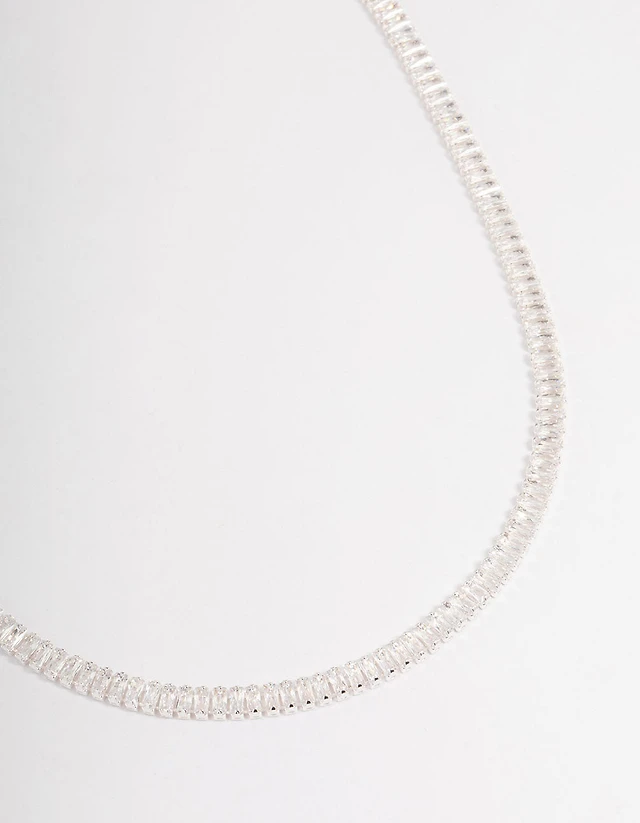 Silver Plated Cubic Zirconia Baguette Cup Chain Necklace