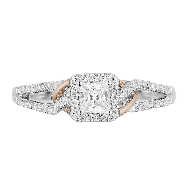 Enchanted Disney Aurora Engagement Ring with .50 Carat TW of Diamonds in 14kt White and Rose Gold