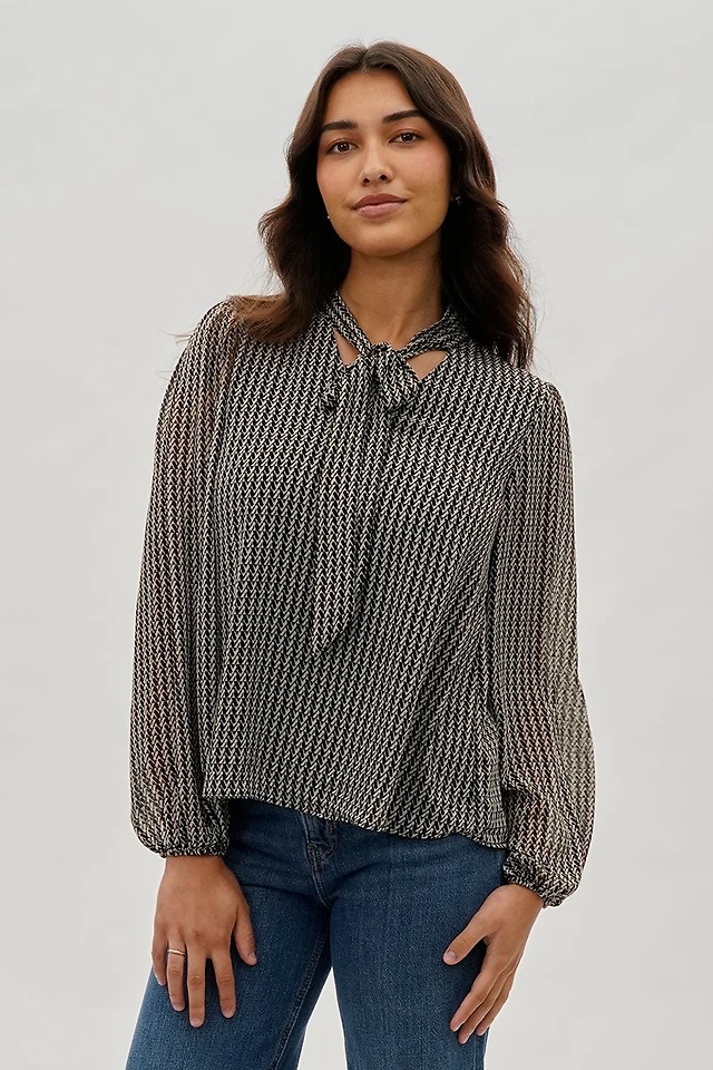 Runaway Bay Printed Smocked Hem Blouse - Black