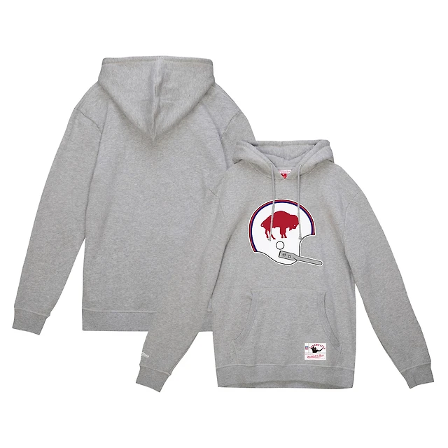 Men's Mitchell & Ness Heather Gray Buffalo Bills All Over Print Vintage Fleece Crewneck Sweatshirt