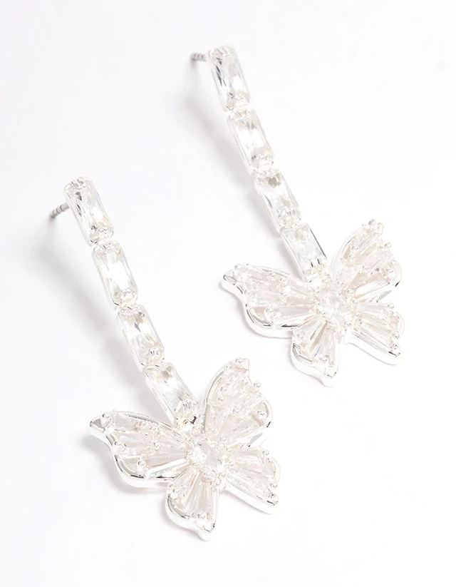 Silver Plated Butterfly Cubic Zirconia Drop Earrings