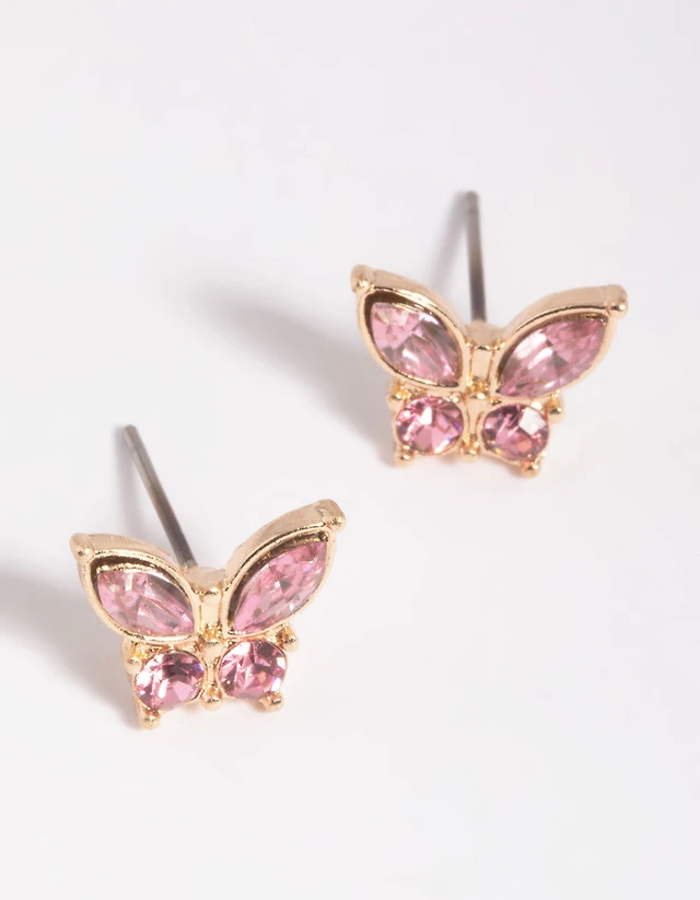 Child's Cubic Zirconia Butterfly Stud Earrings in 10K Gold