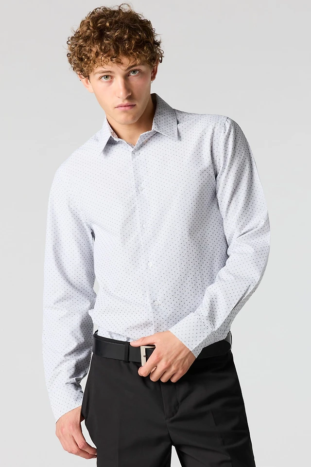 White Slim-Fit Dress Shirt with Grey Micro Dots