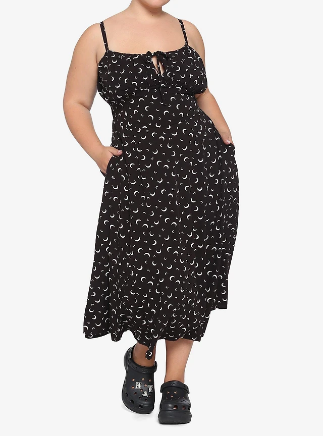 Beechers Brook Dotted Pleated Square Neck Midi Dress - Black
