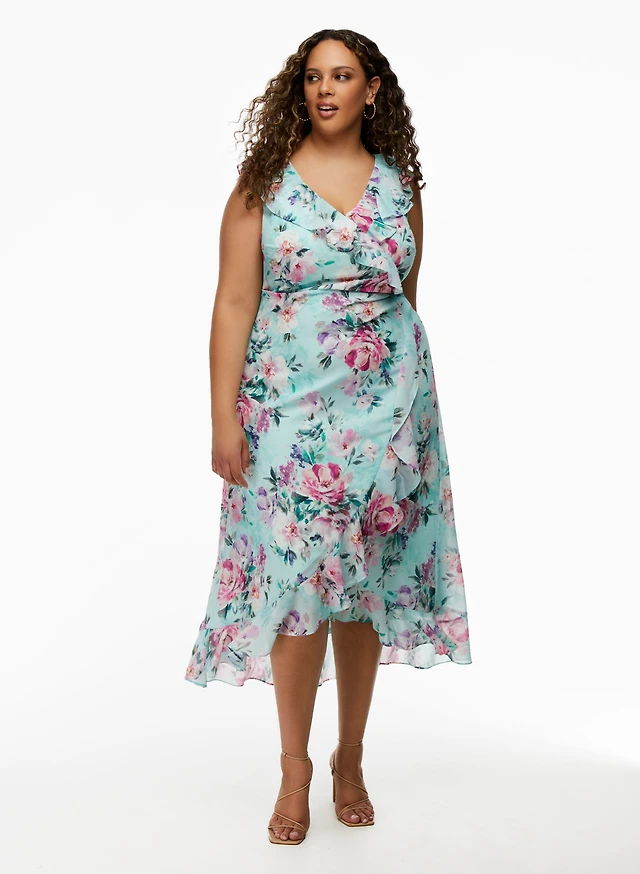 Green Butterfly Mushroom Empire Midi Dress Plus Size