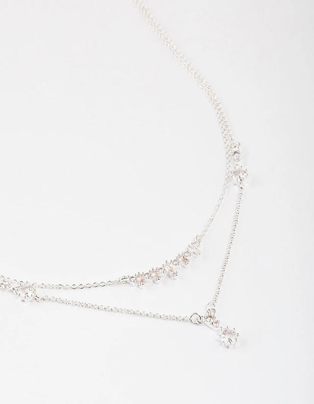 Silver Plated Cubic Zirconia Marquise Vine Y-Shaped Necklace