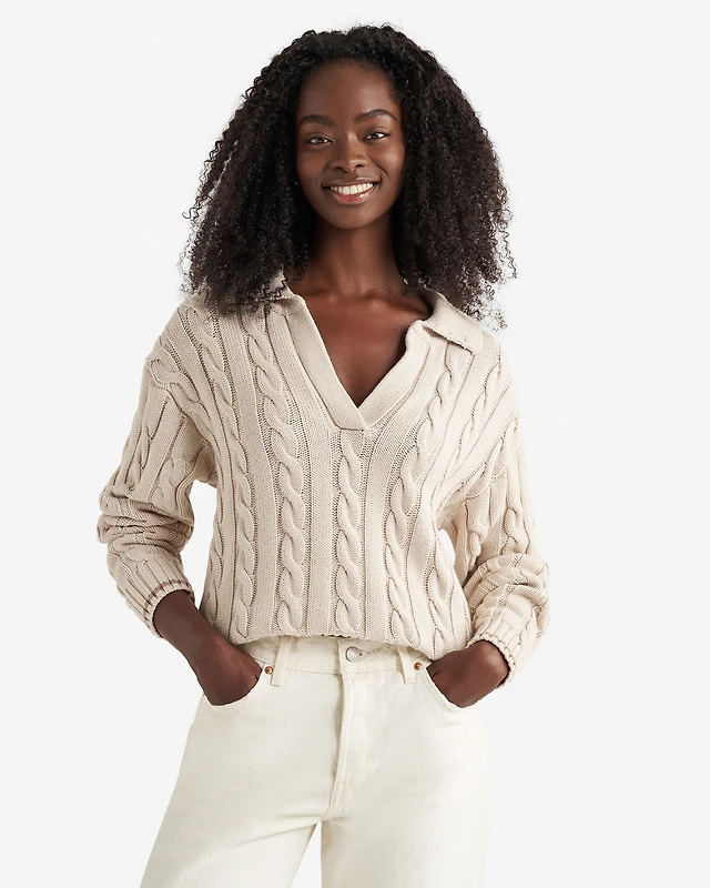 HARLOW MABLE CABLE KNIT SWEATER - OFF WHITE