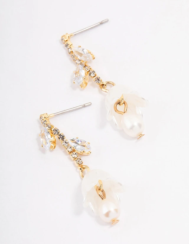 Silver Plated Cubic Zirconia Fan Pearl Stud Earrings