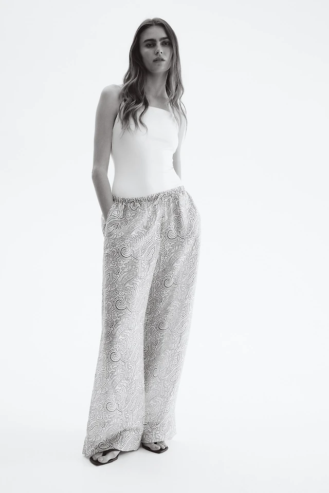 Wide-Leg Twill Pants