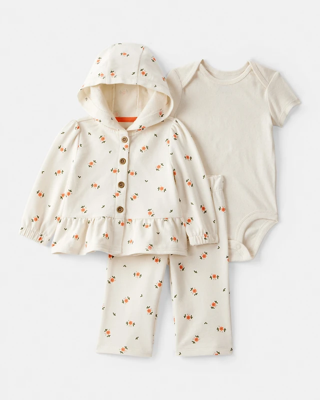 Baby Girl 3-Piece Floral Sweatshirt Outfit Set - Green