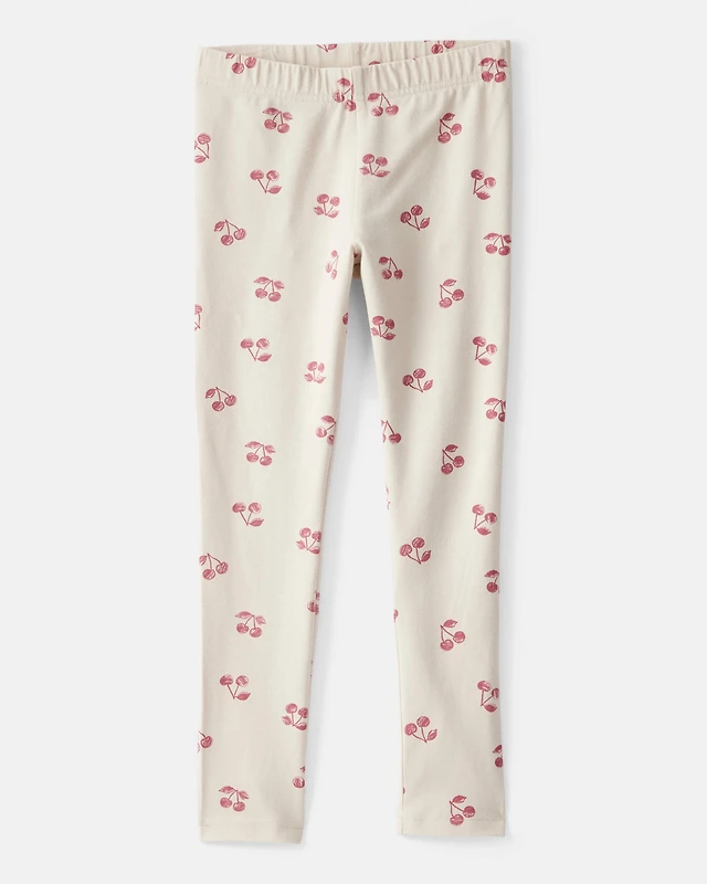 Girls Floral 100% Cotton Pull-On Stretch Leggings - Blue