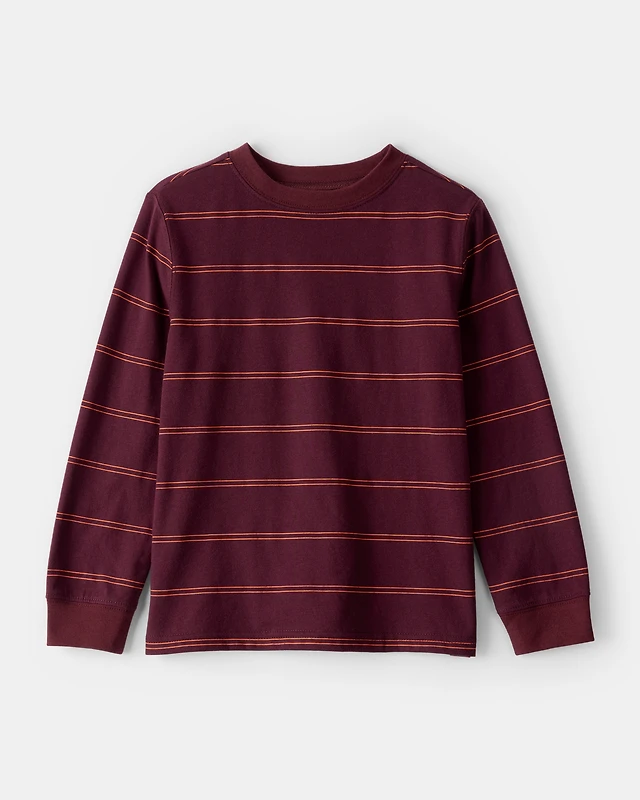 Boys Striped Long-Sleeve T-Shirt - Burgundy