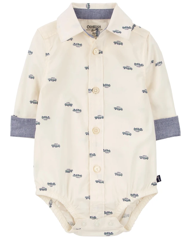 Baby Boy 4-Pack Construction Print Long-Sleeve Multipack Bodysuits - White/Navy Blue