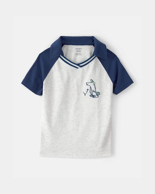 Toddler Boy Alligator Polo Shirt - Blue/Grey