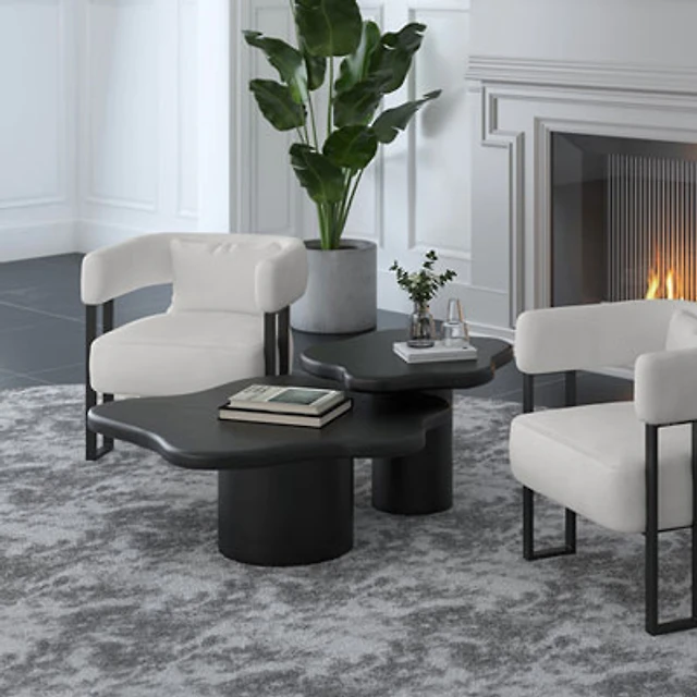 Monarch Chic Contemporary 2-Piece Nesting Table Set - White/Glass