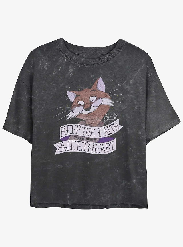 Disney The Rescuers Down Under Rufus Cat Keep Faith Sweetheart Mineral Wash Girls Crop T-Shirt