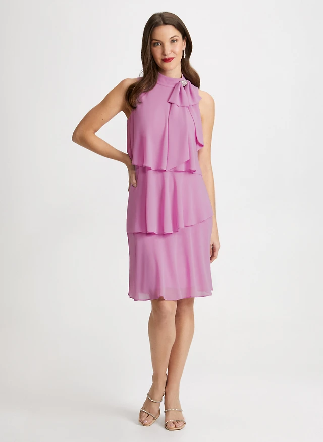 Tie Neck Detail Dress & Crystal Drop Earrings