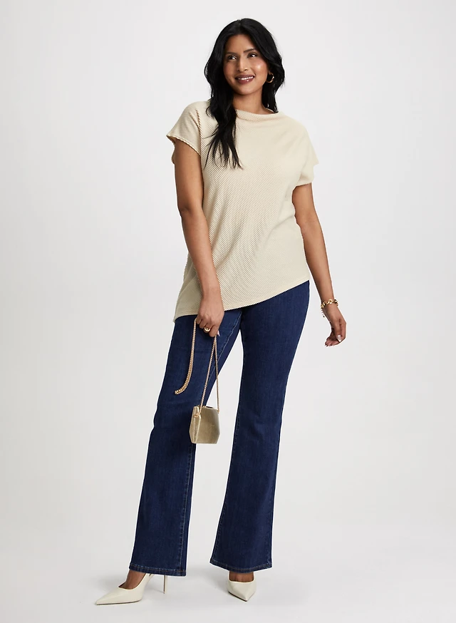 Asymmetric Funnel Neck Top & Bootcut Jeans