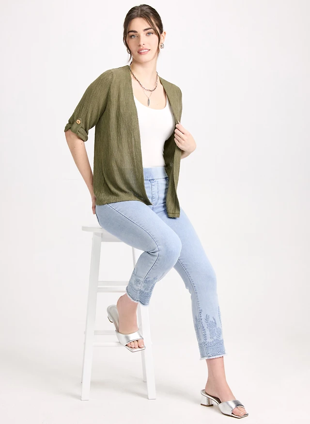 Cascade-Front Cover Up & Ankle Length Pull-On Jeans