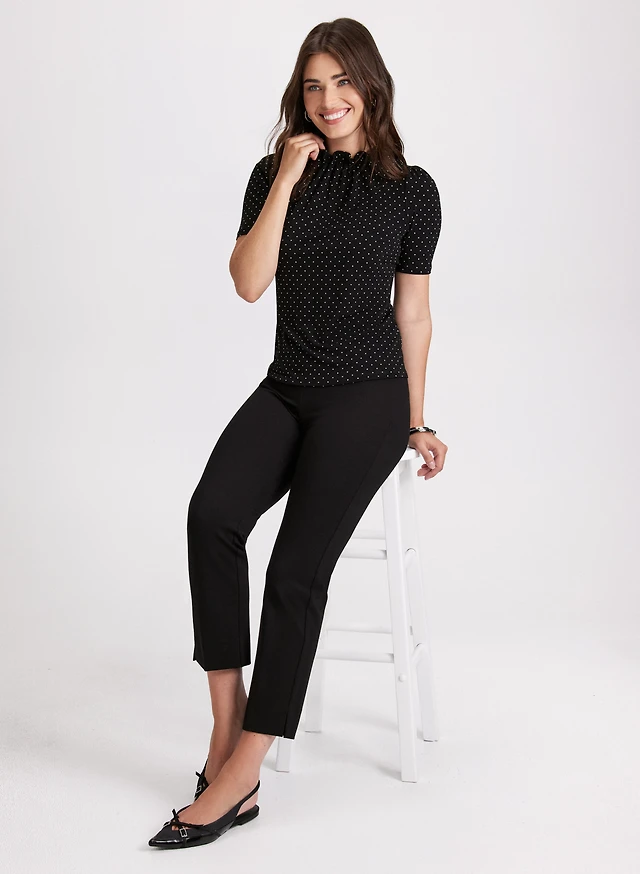 Polka Dot Mock Neck Top & Straight Leg Pants