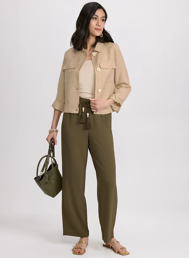 Short Linen Jacket & Crinkled Wide-Leg Pants