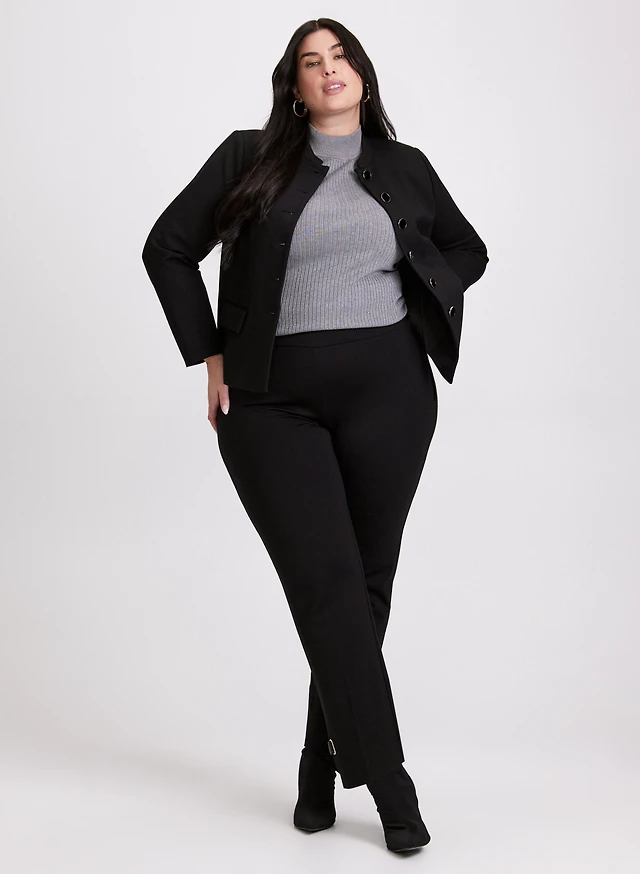 Crew Neck Button-Down Jacket & Sophia Slim-Leg Pants