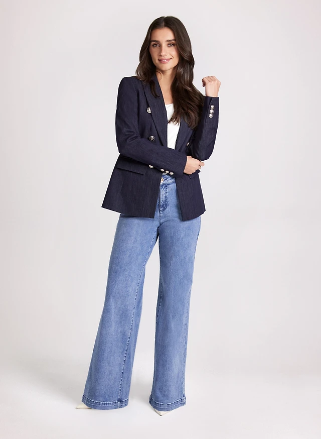 Contrast Stitch Denim Blazer & Olivia Denim Wide-Leg Pants