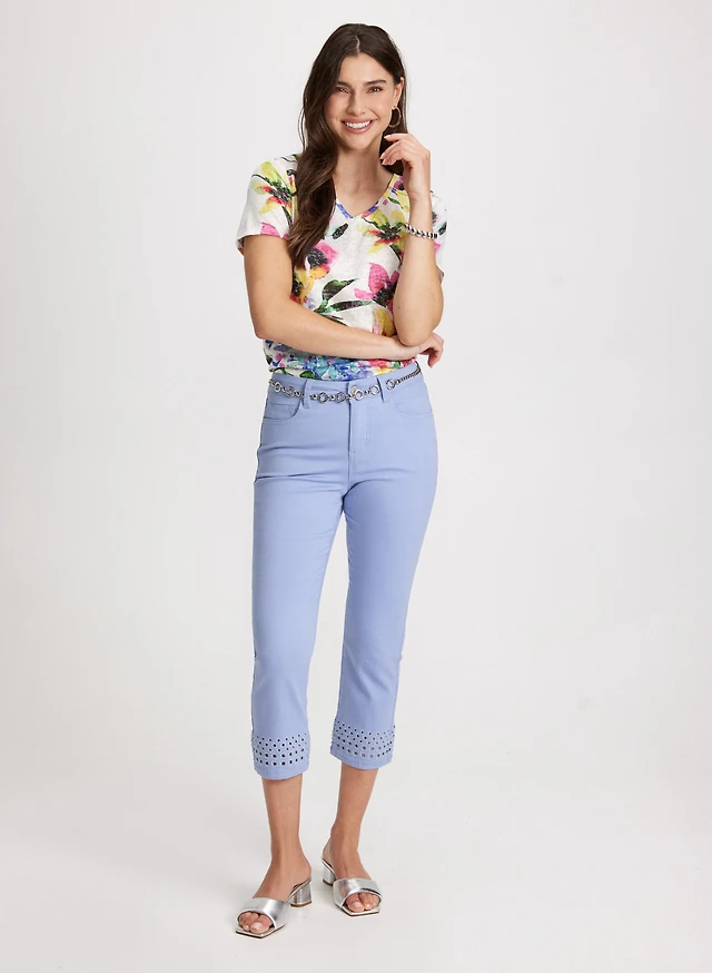 Floral Trim Burnout Tee & Pull-On Bengaline Capris
