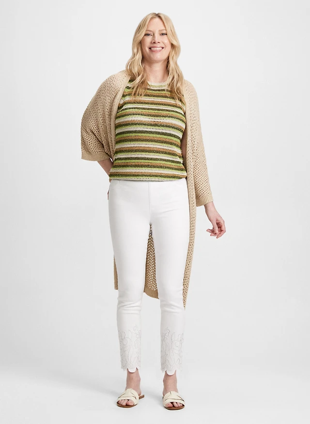 Sleeveless Open Knit Top & Pull-On Floral Ankle Pants