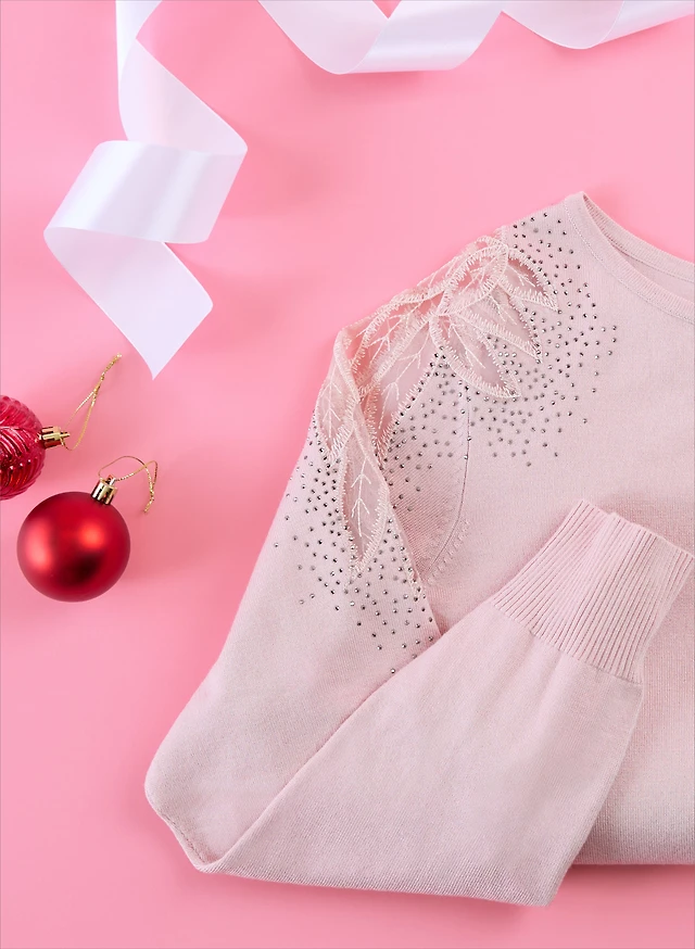 Rhinestone Detail Satin Blouse