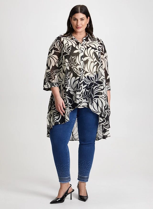 Floral Burnout T-Shirt & Embellished Hem Jeans