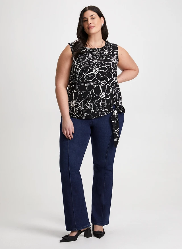 Floral Print Sleeveless Blouse & Bootcut Jeans