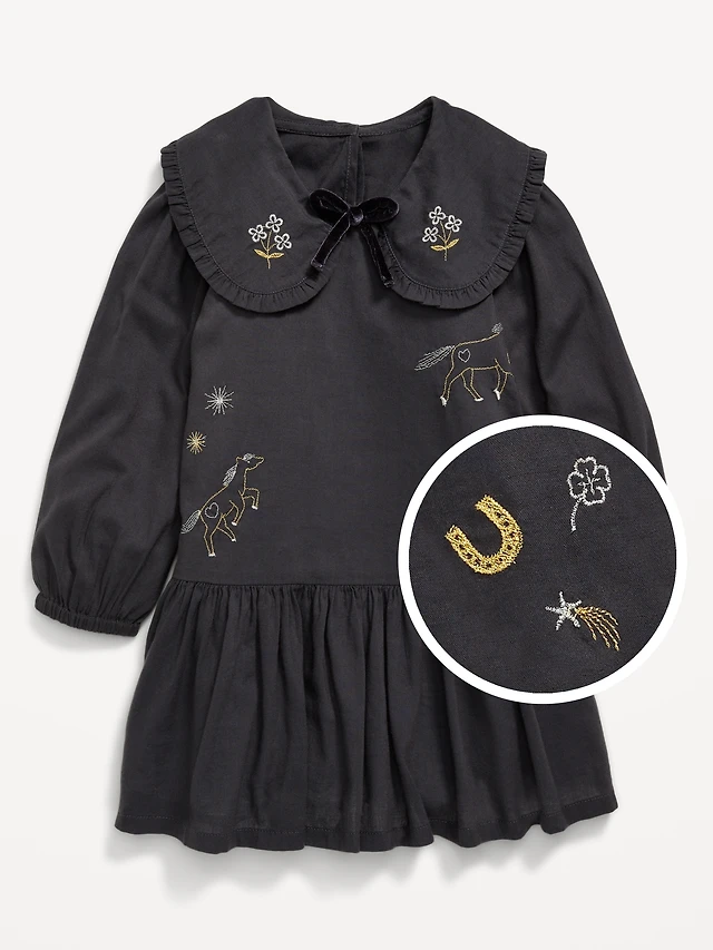 Long-Sleeve Plaid Collared Dress for Toddler Girls