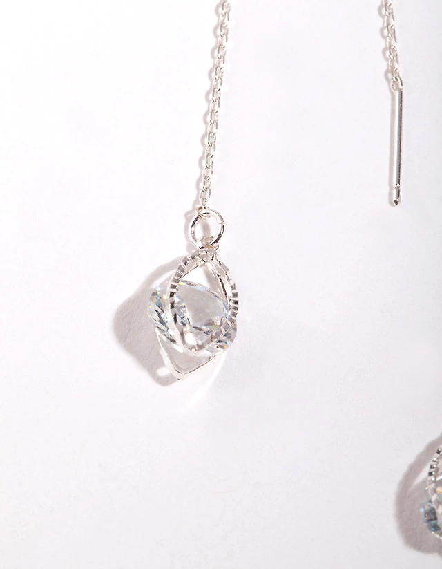 Silver Cubic Zirconia Chain Teardrop Earrings