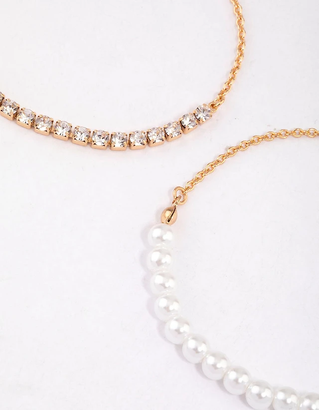 *Britney Gold Necklaces Set with Mixed Chains and Rhinestones