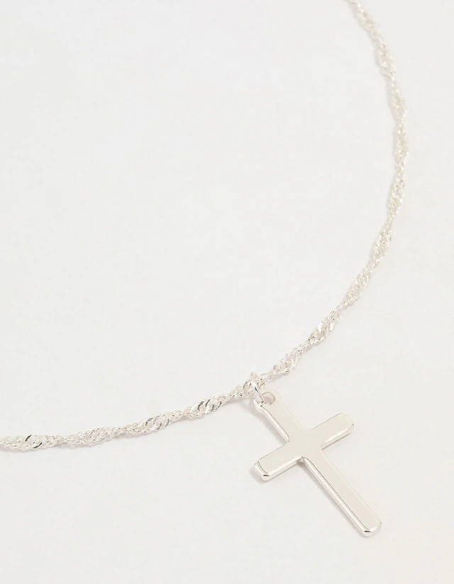 Men's Diamond Accent and Grey Carbon fibre Stacked Cross Pendant in Stainless Steel - 24"