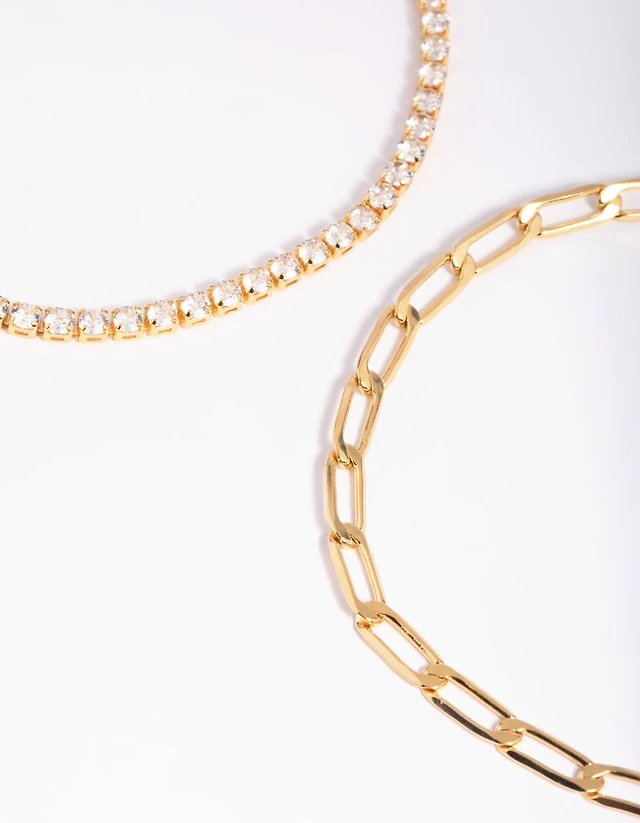Gold Plated Diamante Curb Chain Layered Necklace