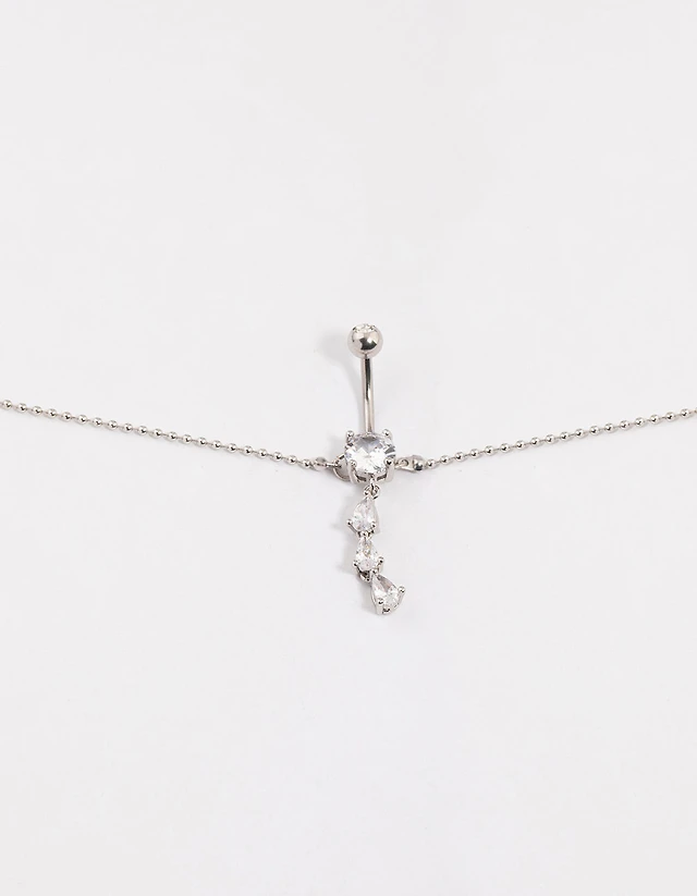 Sterling Silver Chain Cubic Zirconia Drop Earrings