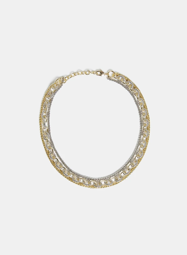 Gold Plated Diamante Filigree Cross & Chain Layered Necklace